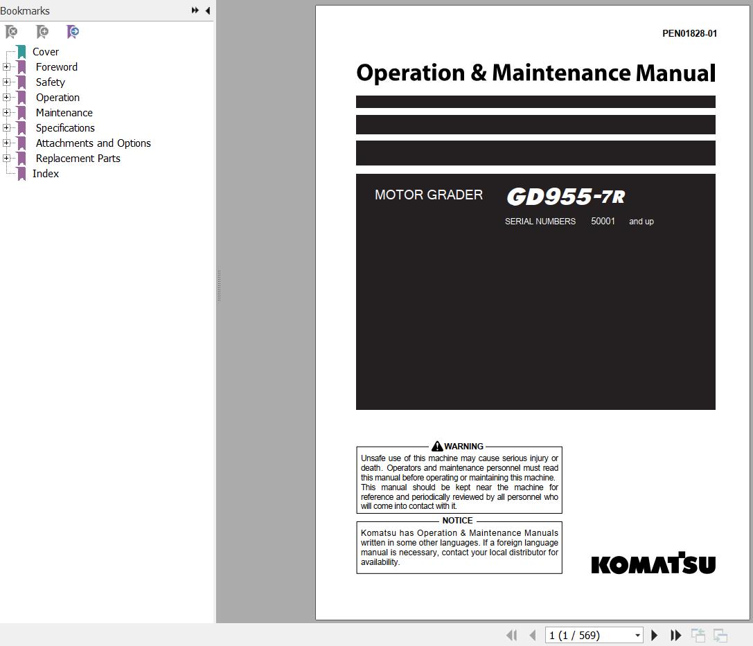 Komatsu GD955-7R Operation & Maintenance Manual PEN01828-01