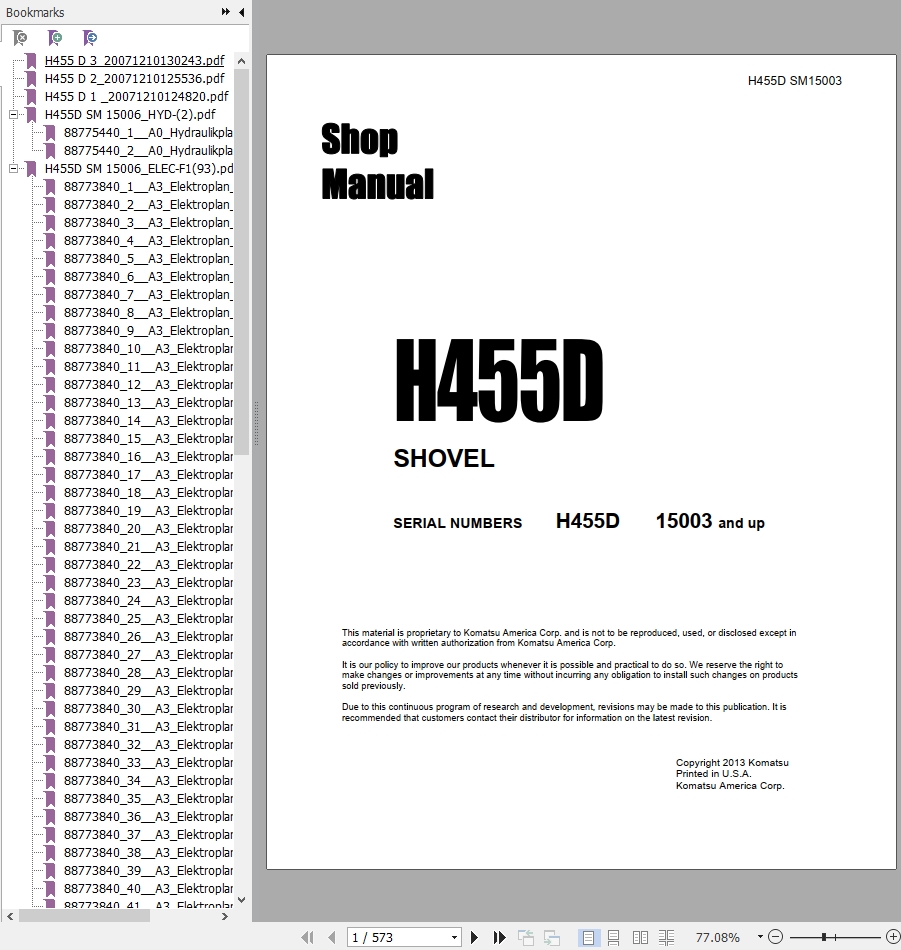 Size: 18.5 MBMachine: Mining ShovelMachine Model: H455DSerial Number: 15003 and up Publication Date: 2013 Page: 573 Pages
