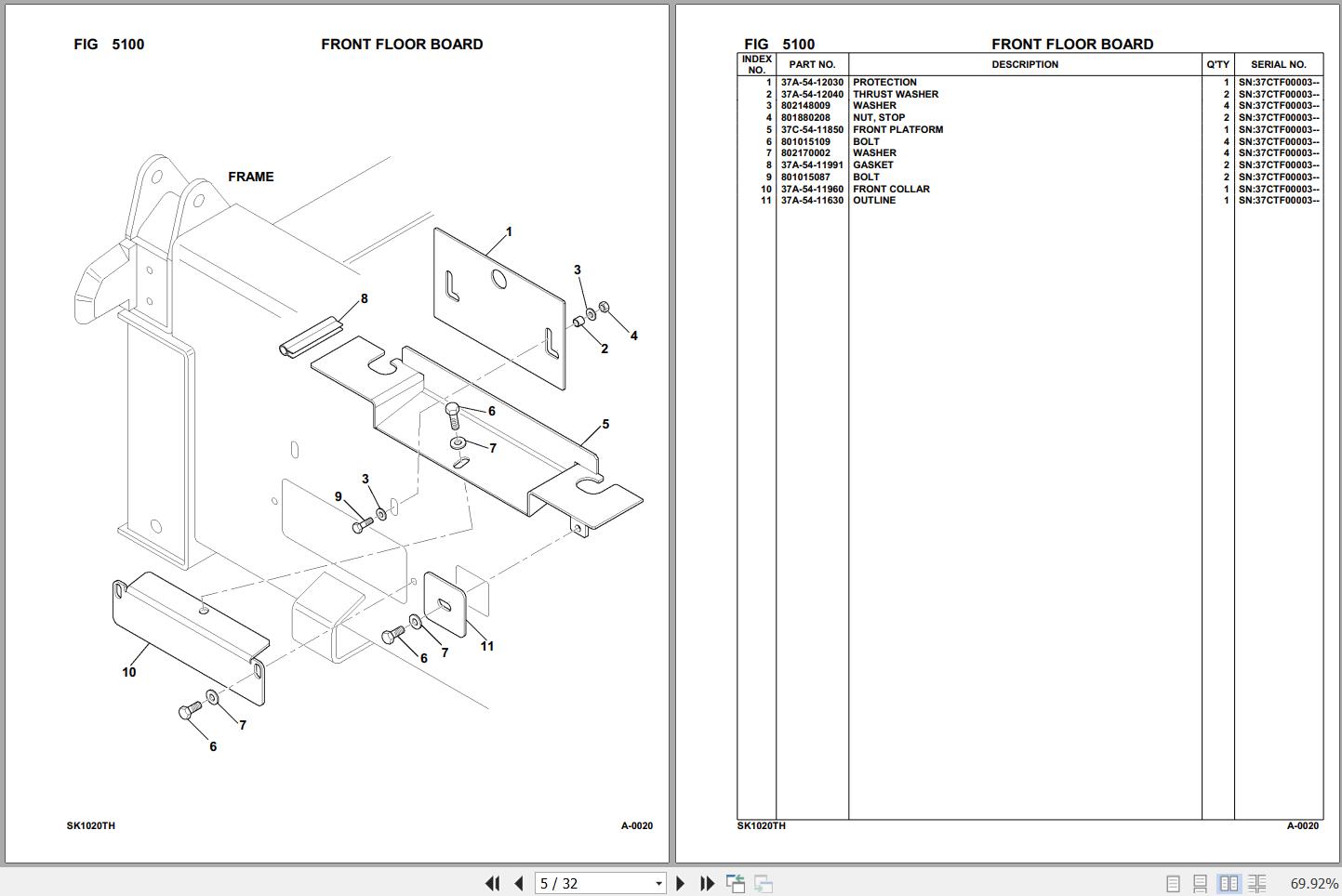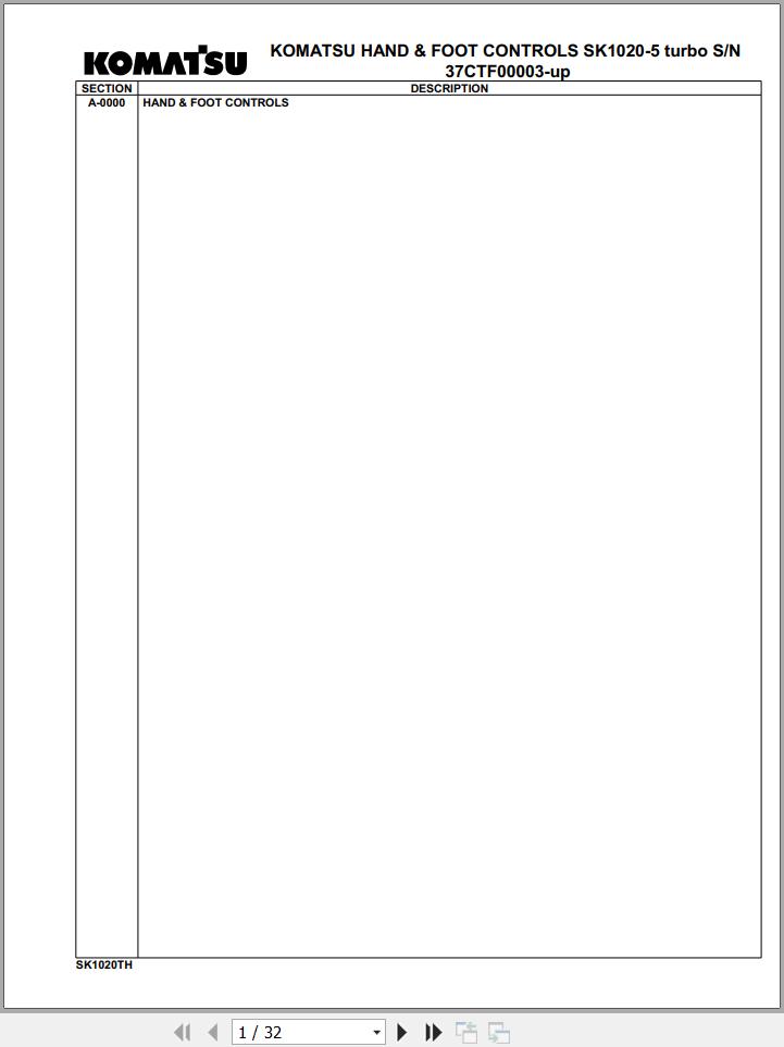 Komatsu Hand Foot Controls SK1020-5 turbo 37CTF00003 Up Spare Parts Catalog