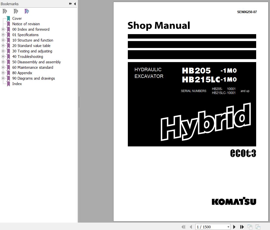 Komatsu HB205-1M0 HB215LC-1M0 Shop Manual SEN06250-07