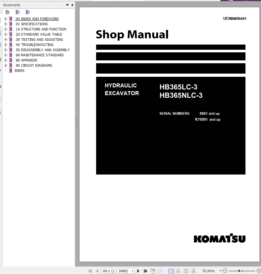 Komatsu HB365LC-3 HB365NLC-3 Shop Manual UENBM00451