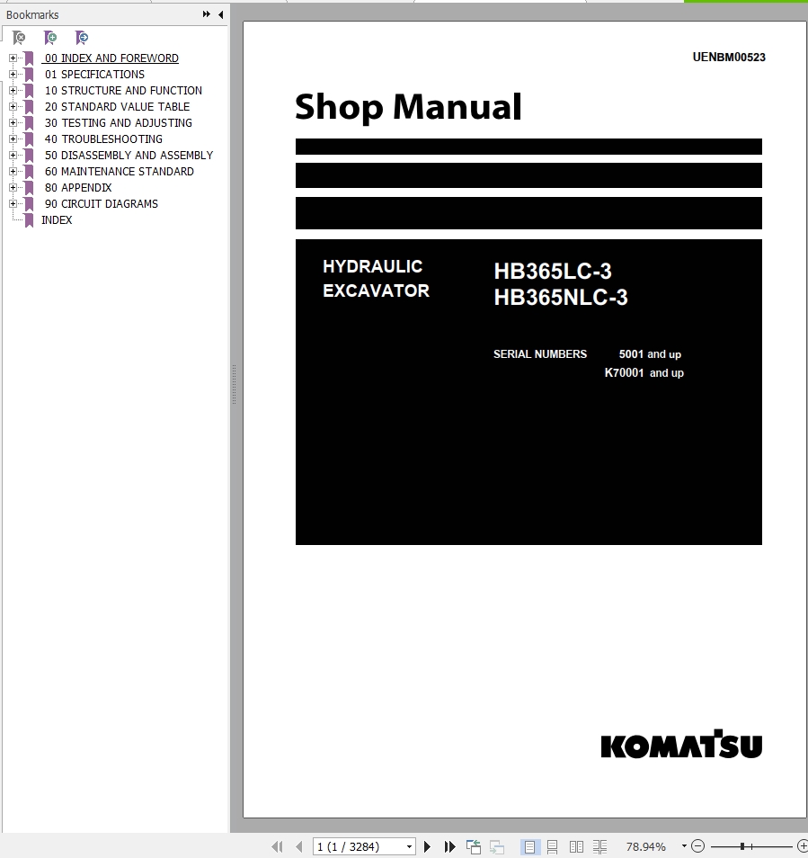 Komatsu HB365LC-3 HB365NLC-3 Shop Manual UENBM00523