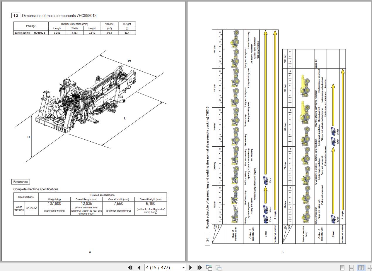 The Bookmarks of Komatsu HD1500-8 Articulated Dump Truck Field Assembly Manual: