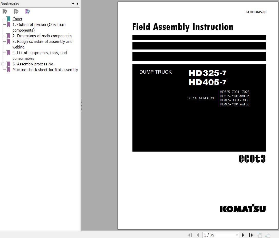 Komatsu HD325-7 HD405-7 Field Assembly Manual GEN00045-08