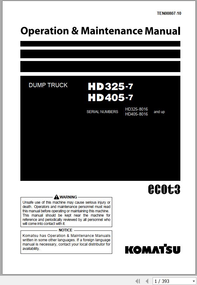 Komatsu HD325-7 HD405-7 Operation & Maintenance Manual TEN00807-10