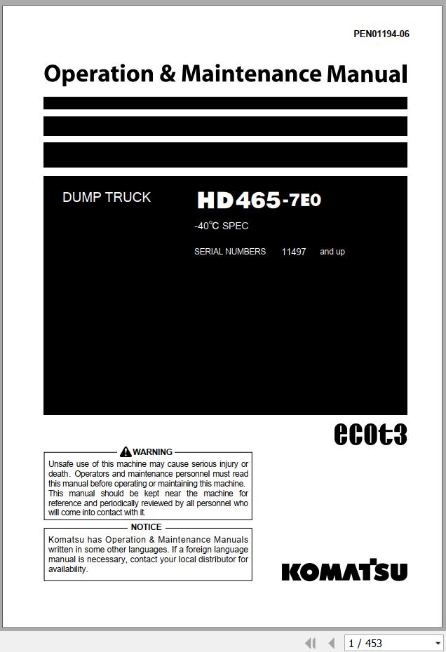 Komatsu HD465-7E0 -40 degree C Operation & Maintenance Manual PEN01194-06