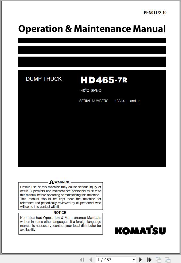 Komatsu HD465-7R -40 degree C Operation & Maintenance Manual PEN01172-10