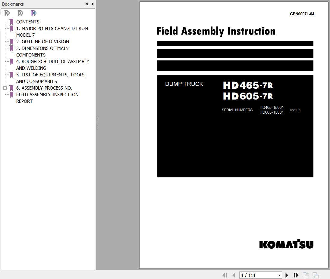 Komatsu HD465-7R HD605-7R Field Assembly Manual GEN00071-04