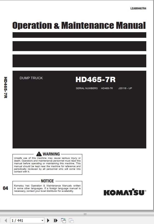 Komatsu HD465-7R Operation & Maintenance Manual LEAMH467R4