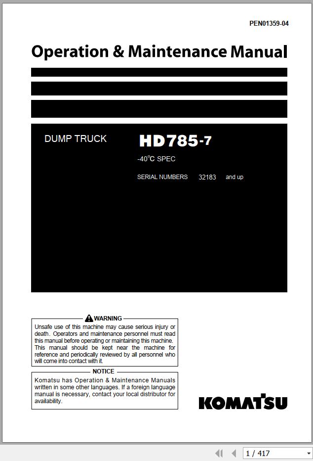 Komatsu HD785-7 -40 degree C Operation & Maintenance Manual PEN01359-04