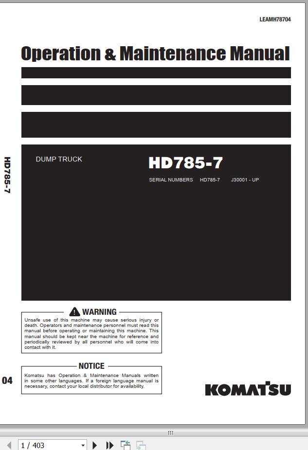 Komatsu HD785-7 Operation & Maintenance Manual LEAMH78704