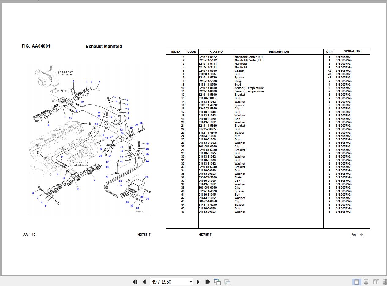 Komatsu HD785-7 Parts Book FEN02186-00-NI-02 Volume 2 of 2