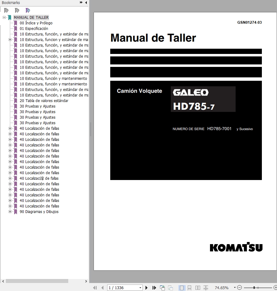 The Bookmarks of Komatsu HD785-7 Camión Volquete Manual de Taller: