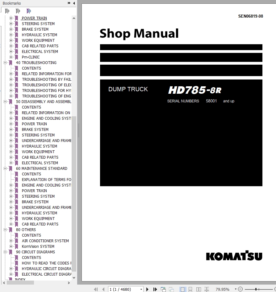 The Bookmarks of Komatsu HD785-8R Dump Truck Shop Manual: