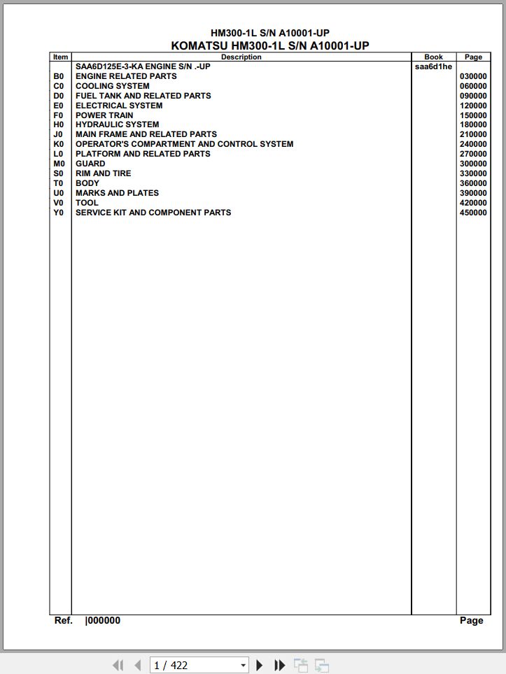 The Bookmarks of Komatsu HM300-1L A10001 Up Spare Parts Catalog: