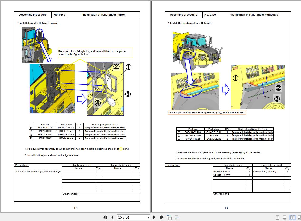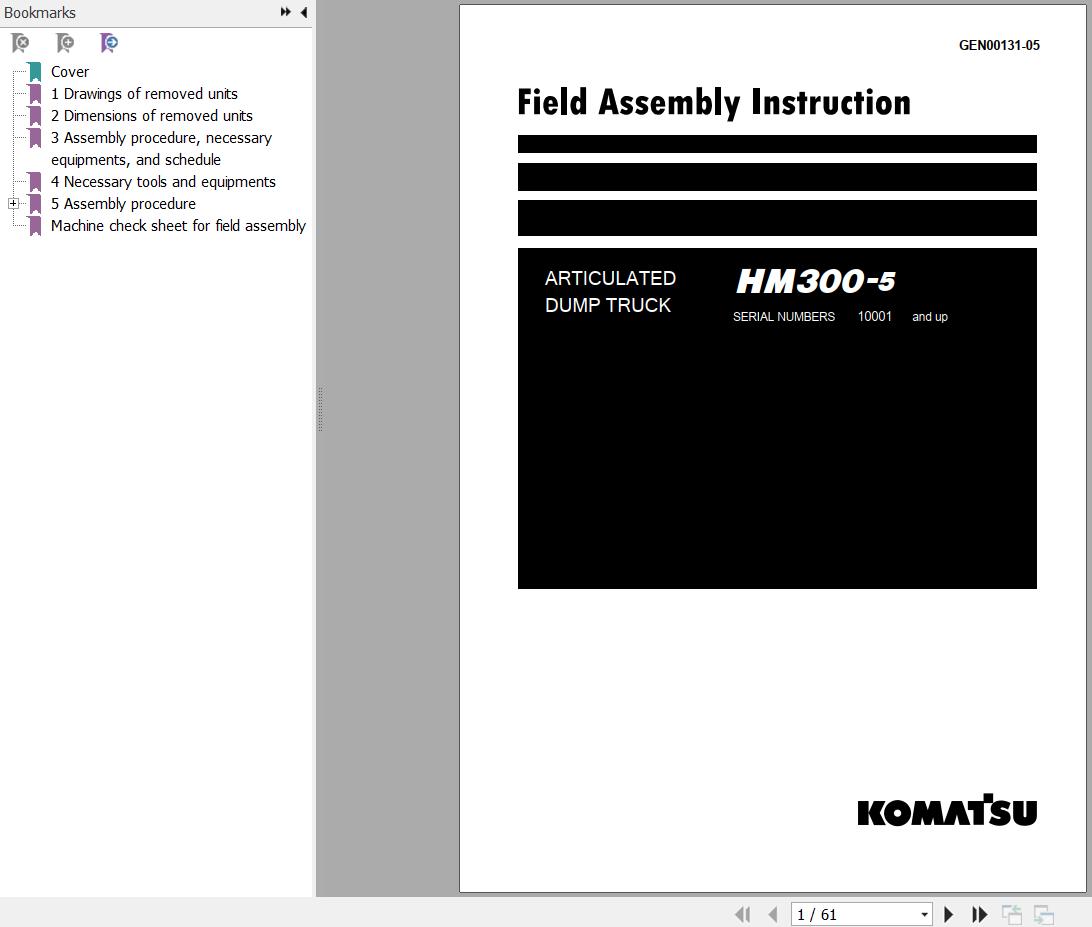 The Bookmarks of Komatsu HM300-5 Articulated Dump Truck Field Assembly Manual: