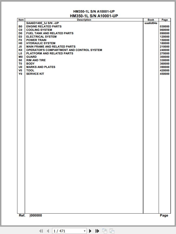 The Bookmarks of Komatsu HM350-1L A10001 Up Spare Parts Catalog: