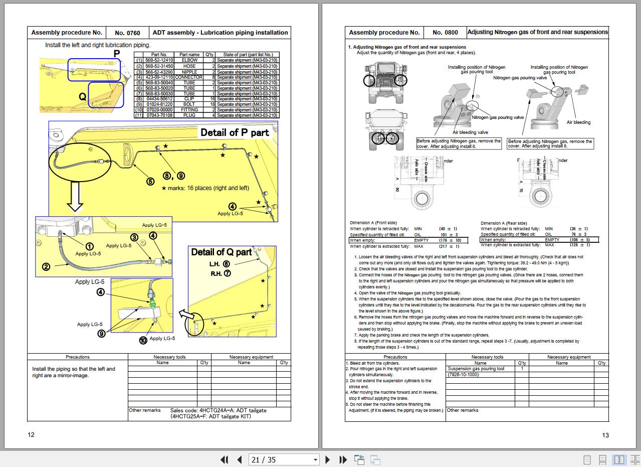 The Bookmarks of Komatsu HM400-3M0 Articulated Dump Truck Field Assembly Manual: