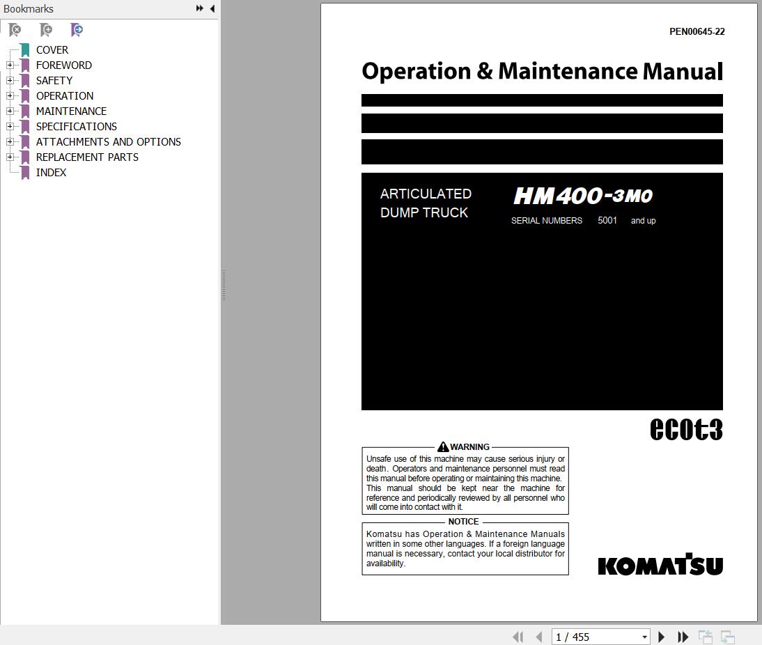 Komatsu HM400-3M0 Operation & Maintenance Manual PEN00645-22
