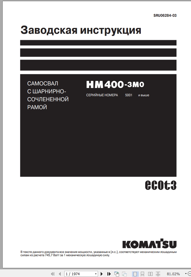 Komatsu HM400-3M0 Shop Manual SRU06284-03