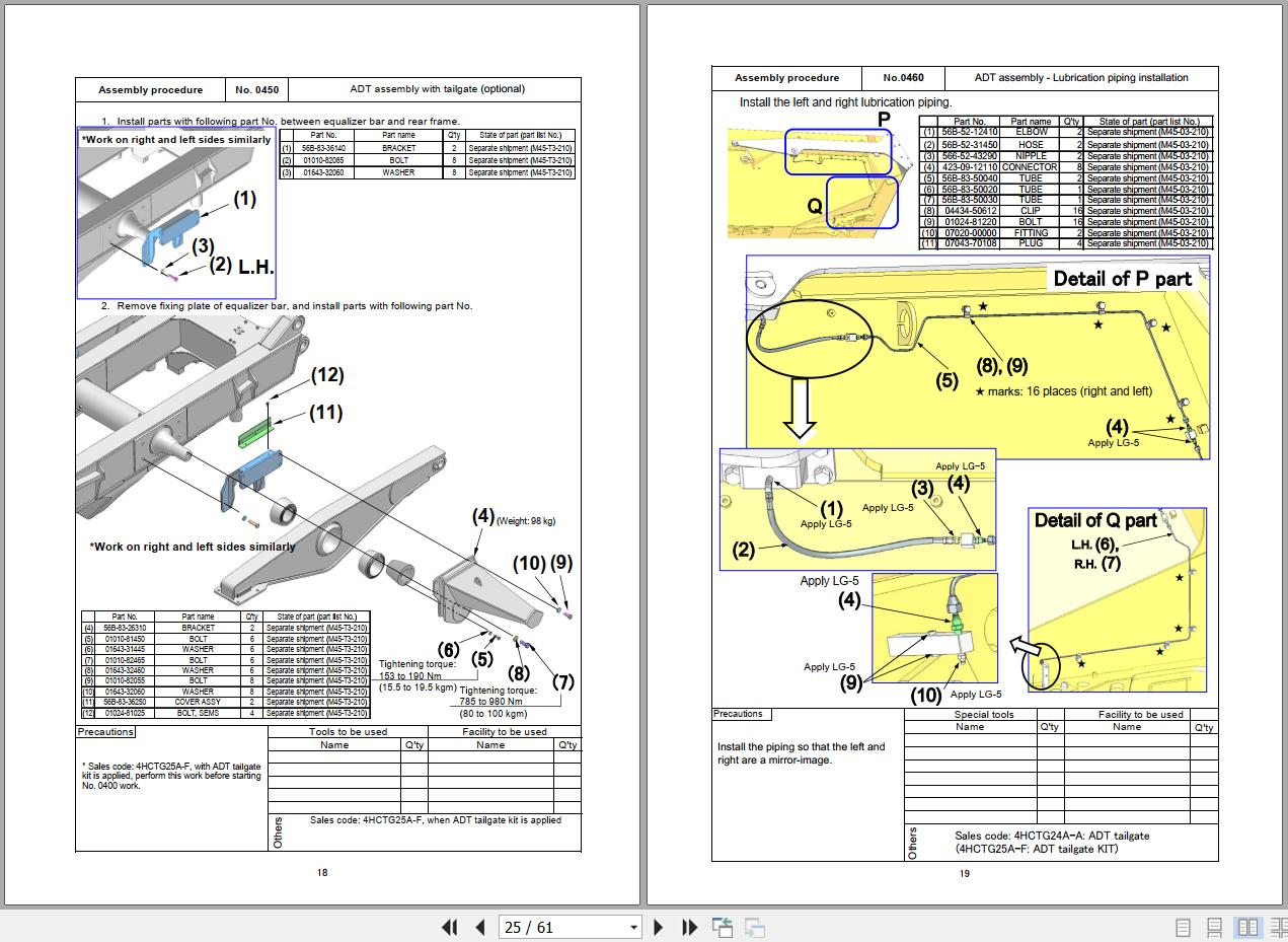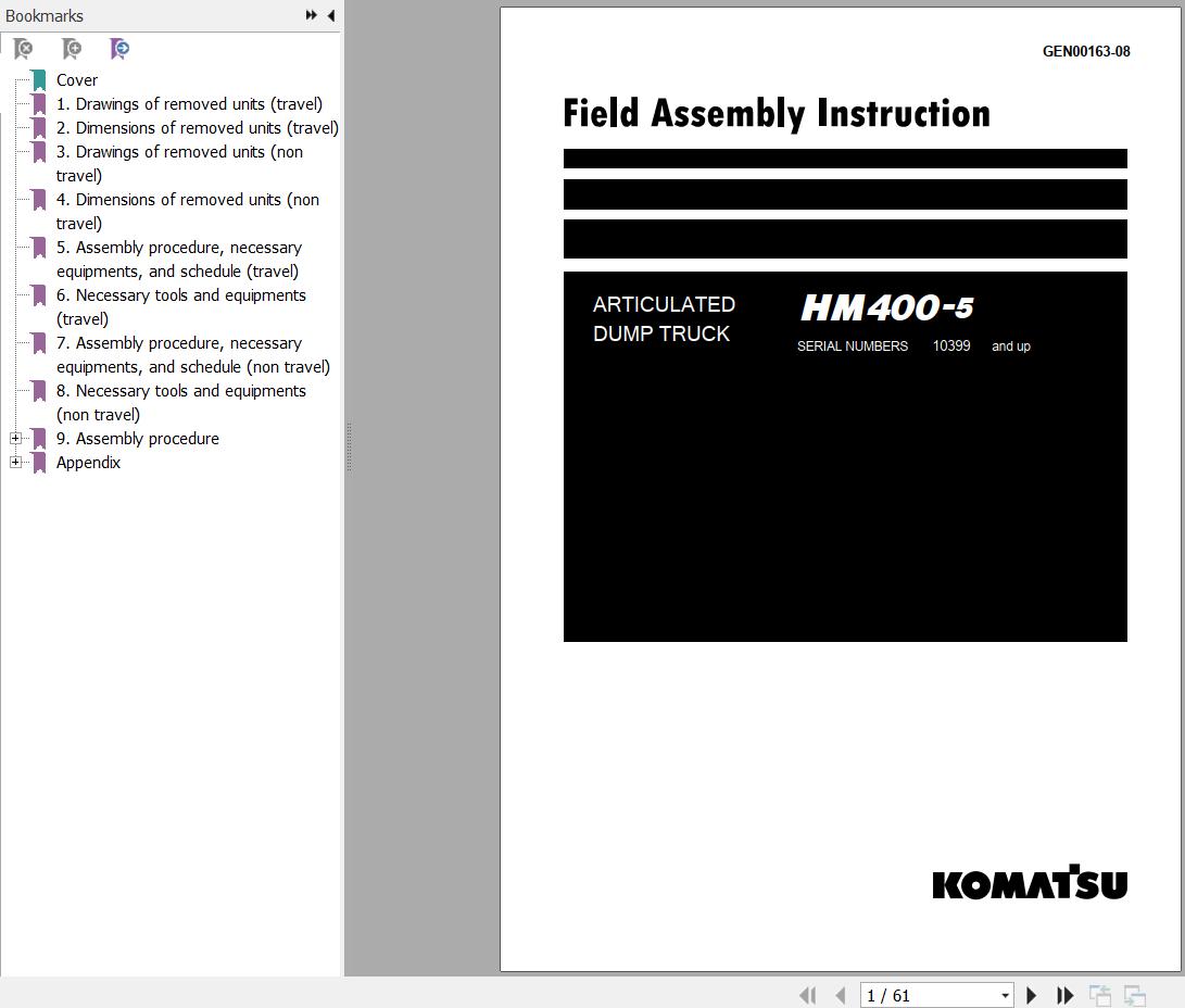 The Bookmarks of Komatsu HM400-5 Articulated Dump Truck Field Assembly Manual: