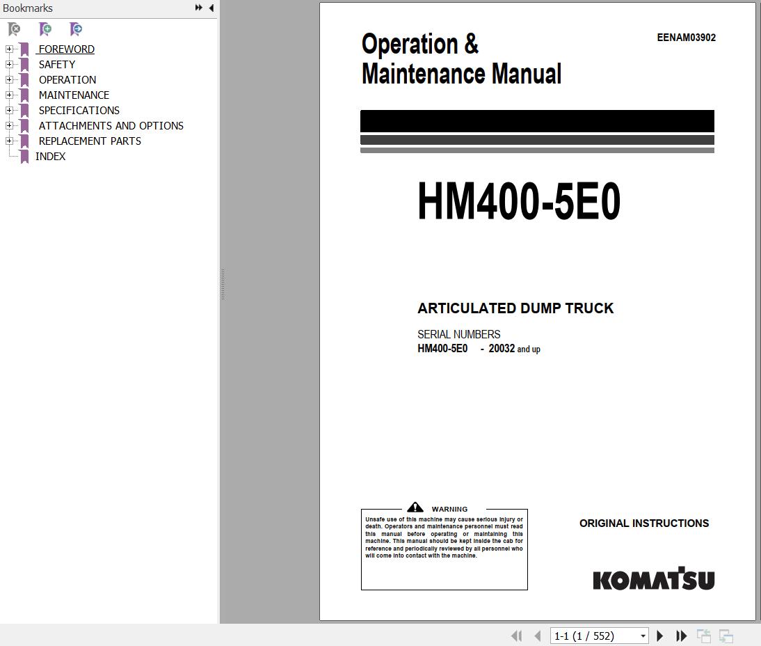Komatsu HM400-5E0 Operation & Maintenance Manual EENAM03902