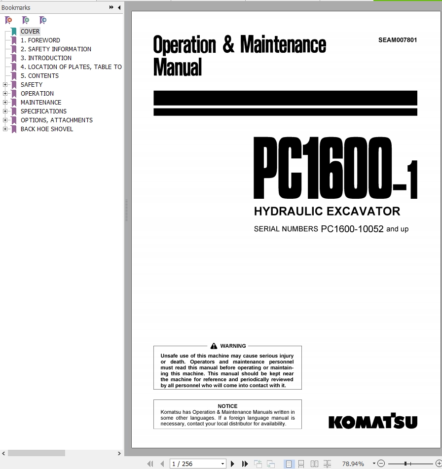 Komatsu PC1600-1 Operation & Maintenance Manual SEAM007801