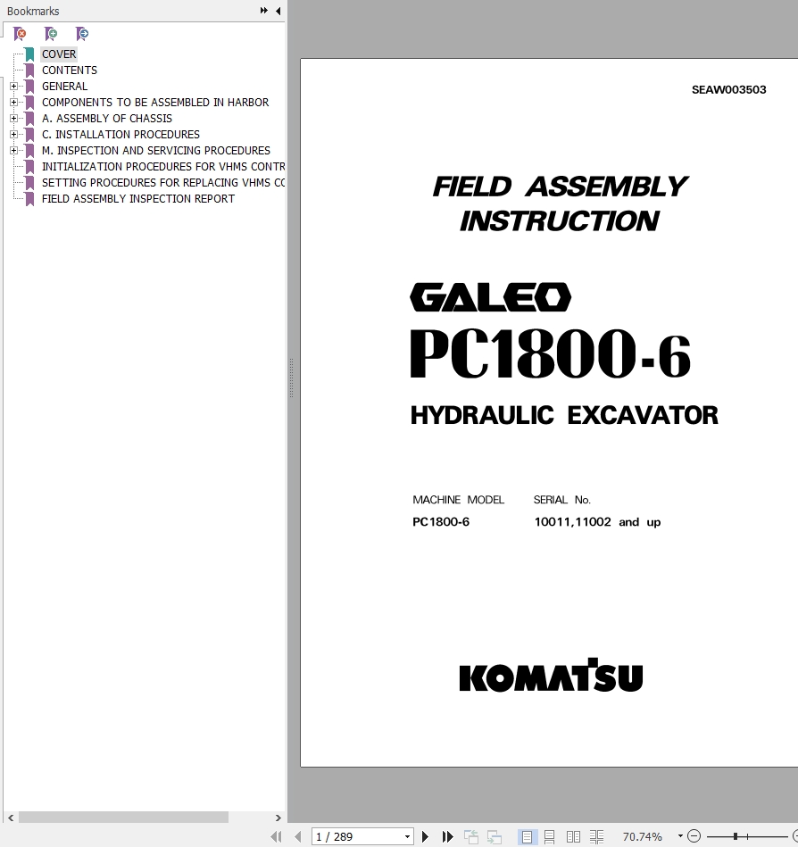 Komatsu PC1800-6 Field Assembly Instruction SEAW003503