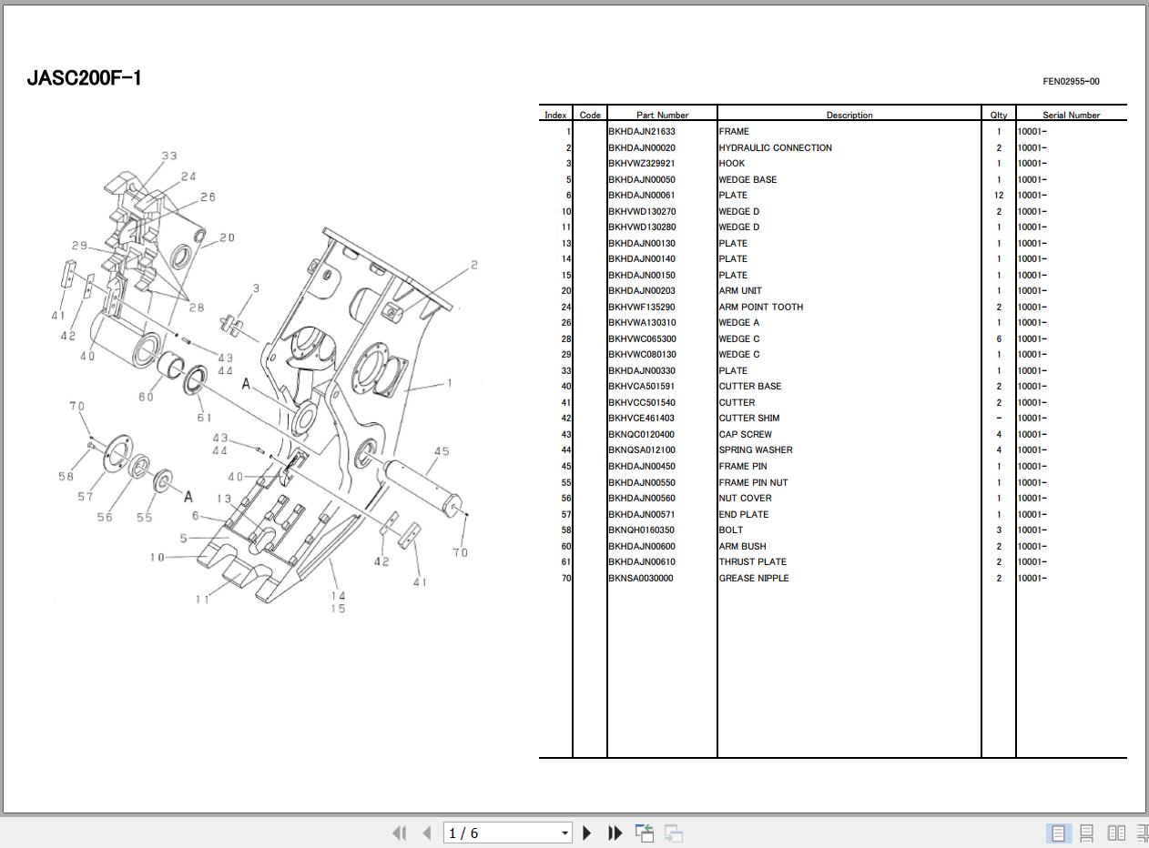 Komatsu JASC200F-1 Parts Book FEN02995-00