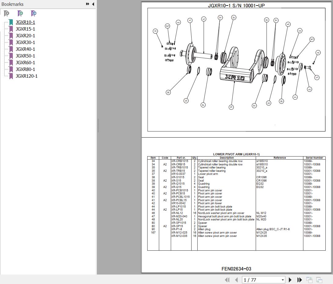 Komatsu JGXR 10 15 20 30 40 50 60 80 120-1 Mount Box Bracket Parts Book FEN02634-03