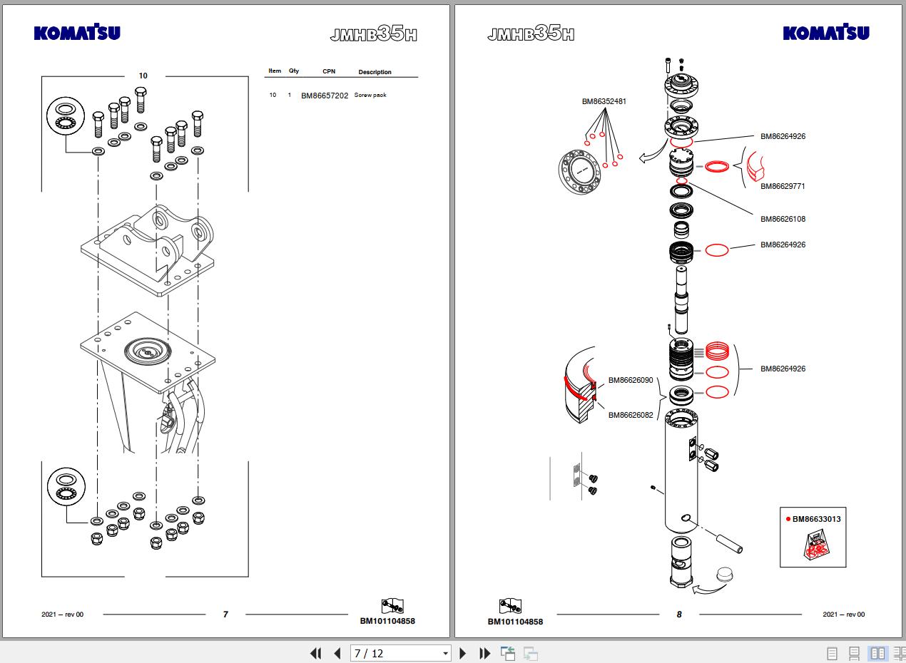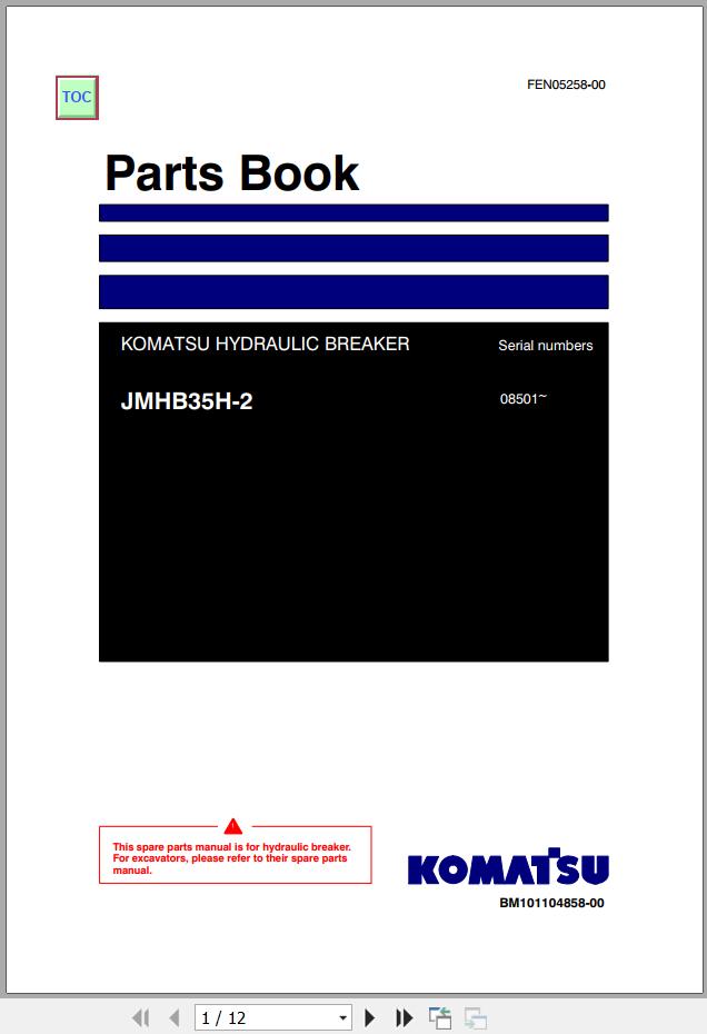 Komatsu JMHB35H-2 Parts Book FEN05258-00