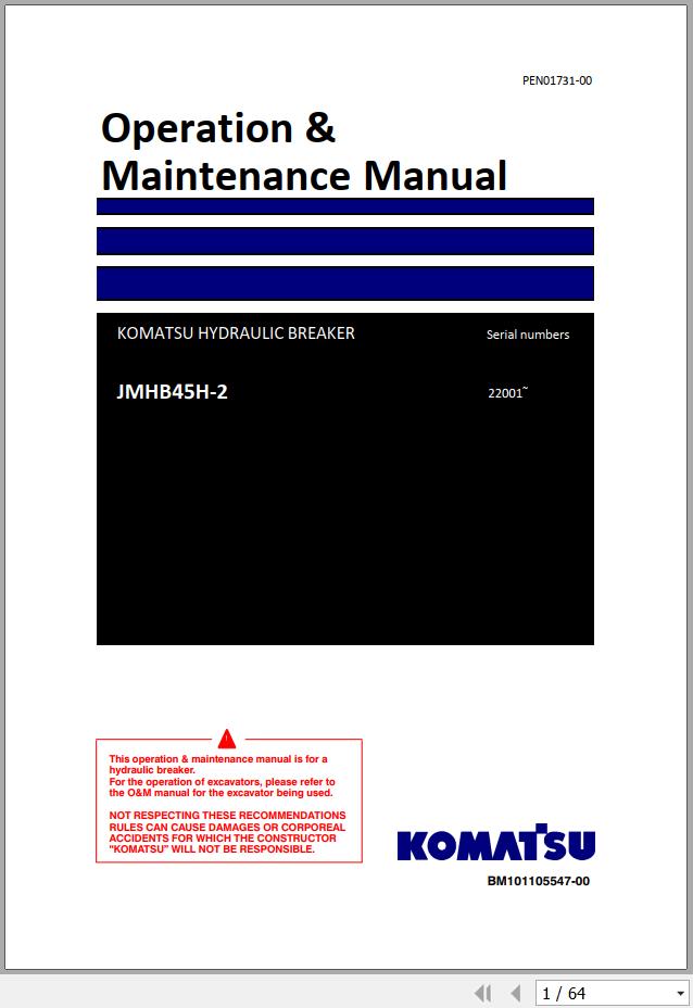 Komatsu JMHB45H-2 Operation & Maintenance Manual PEN01731-00