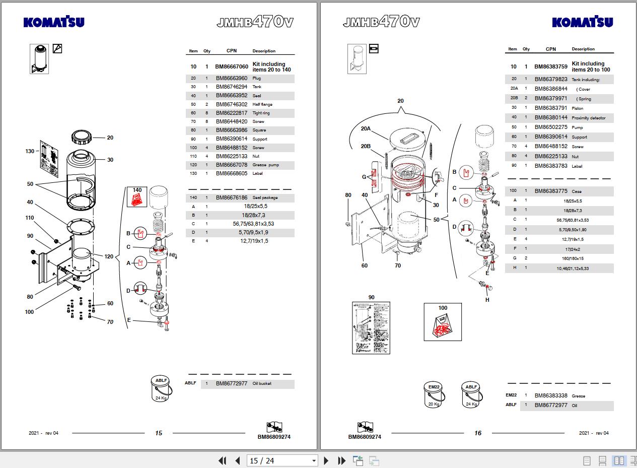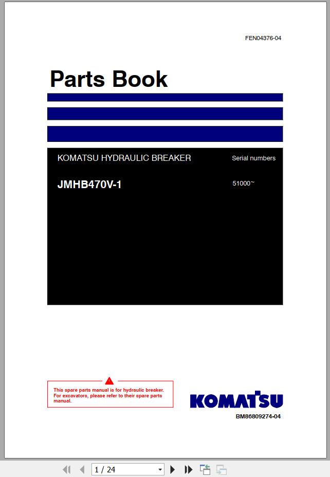 Komatsu JMHB470V-1 Parts Book FEN04376-04