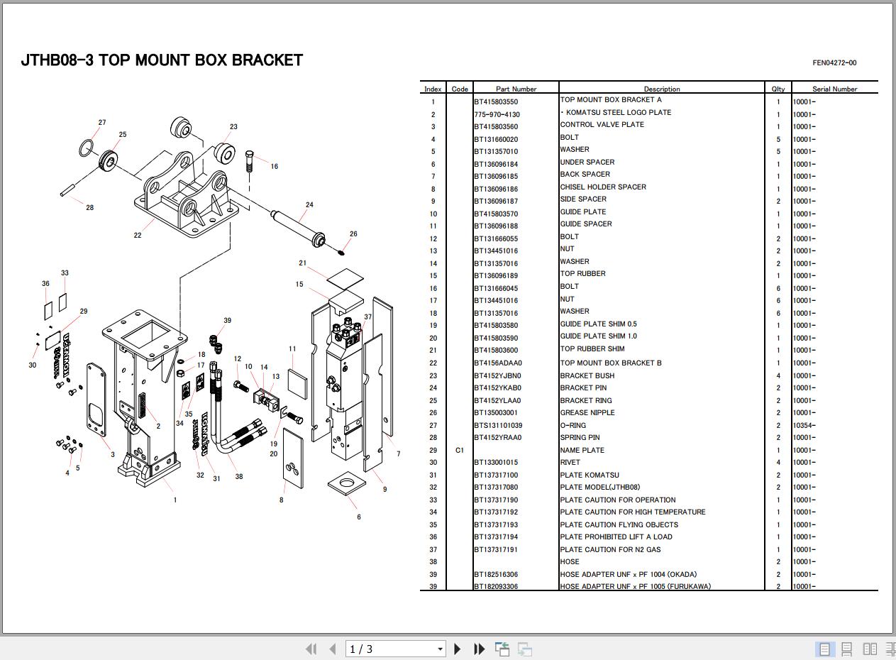 Komatsu JTHB08-3 Mount Box Bracket Parts Book FEN04272-00