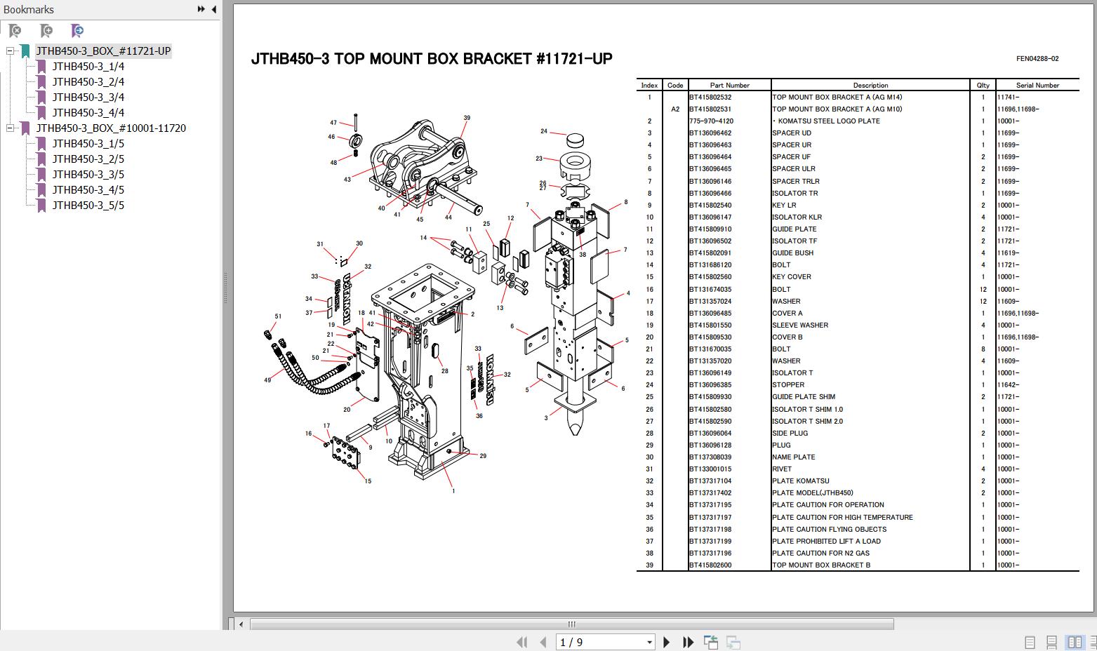 Komatsu JTHB450-3 Mount Box Bracket Parts Book FEN04288-02