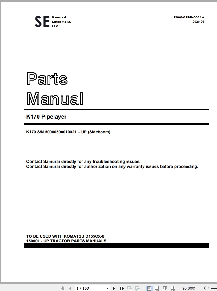 Komatsu K170 Part Manual 5000-08PB-0001A
