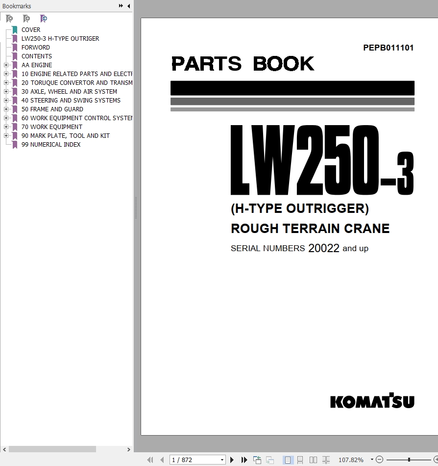 The Bookmarks of Komatsu LW250-3 Rough Terrain Crane Part Book: