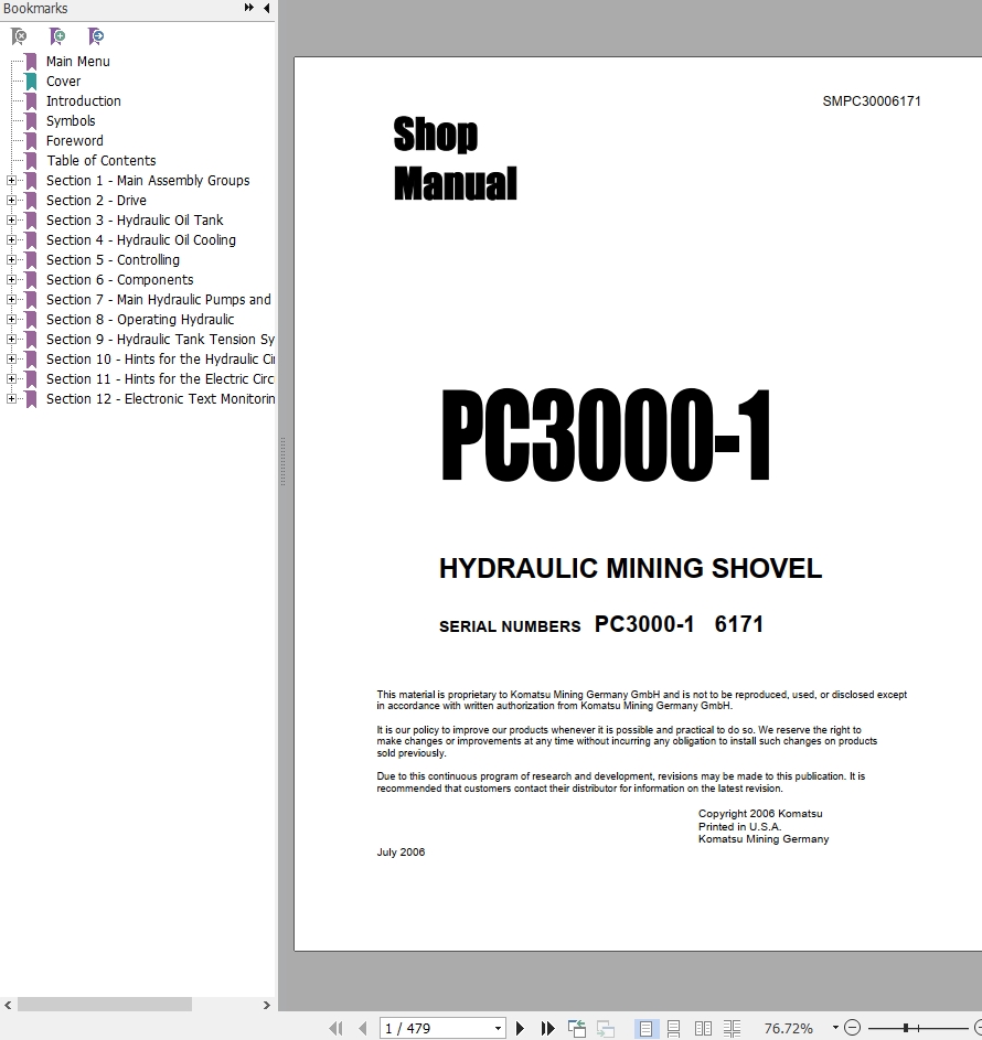 The Bookmarks of Komatsu PC3000-1 Hydraulic Mining Shovel Shop Manual: