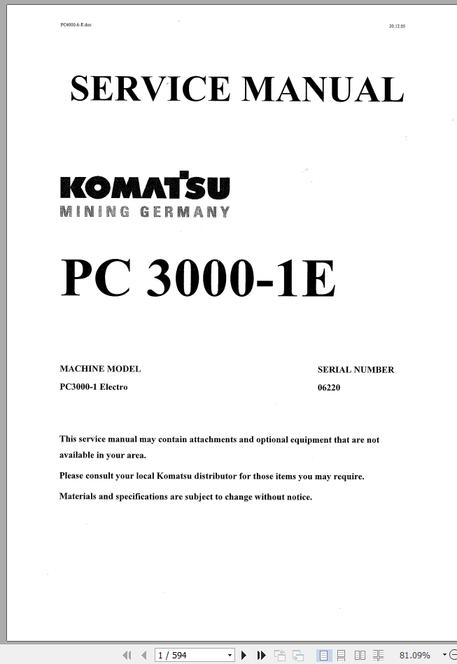 Komatsu PC3000-1E Service Manual GZEBM06220