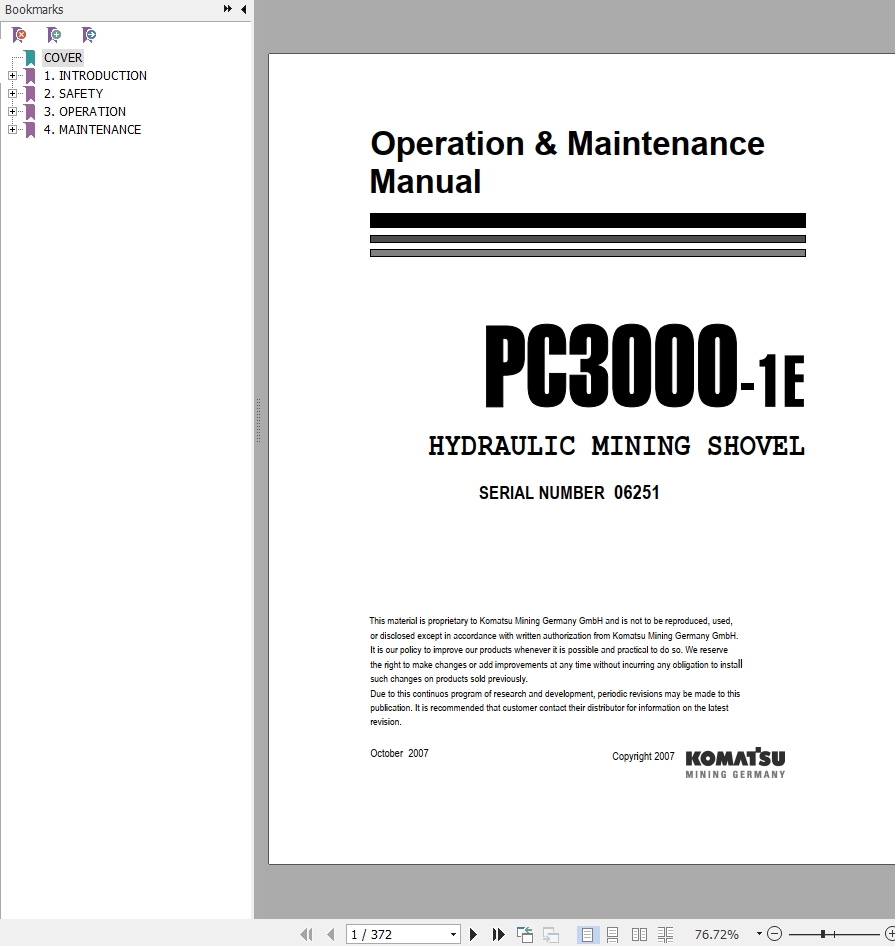 The Bookmarks of Komatsu PC3000-1E Hydraulic Mining Shovel Operation & Maintenance Manual: