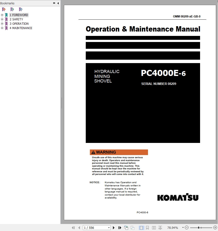 Komatsu PC4000E-6 Operation & Maintenance Manual GZEAM08209-0