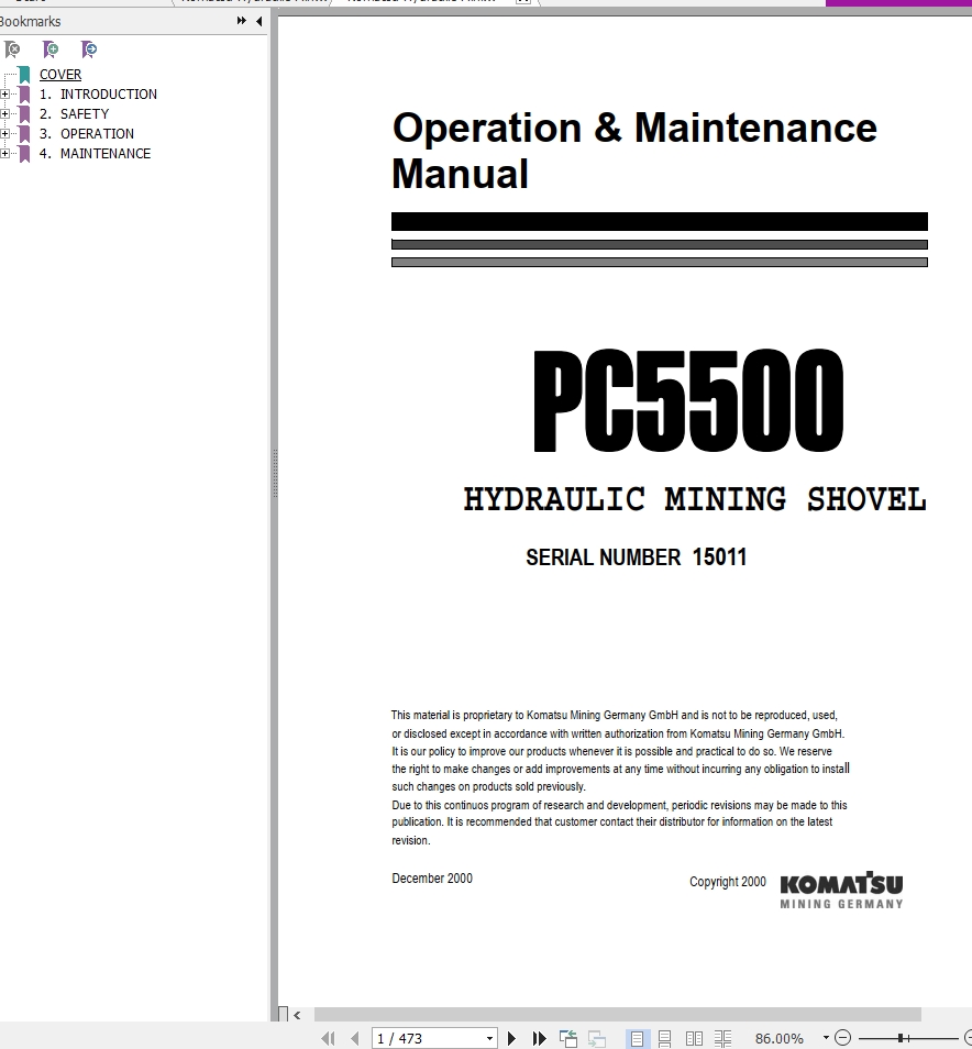 The Bookmarks of Komatsu PC5500 Hydraulic Mining Shovel Operation & Maintenance Manual: