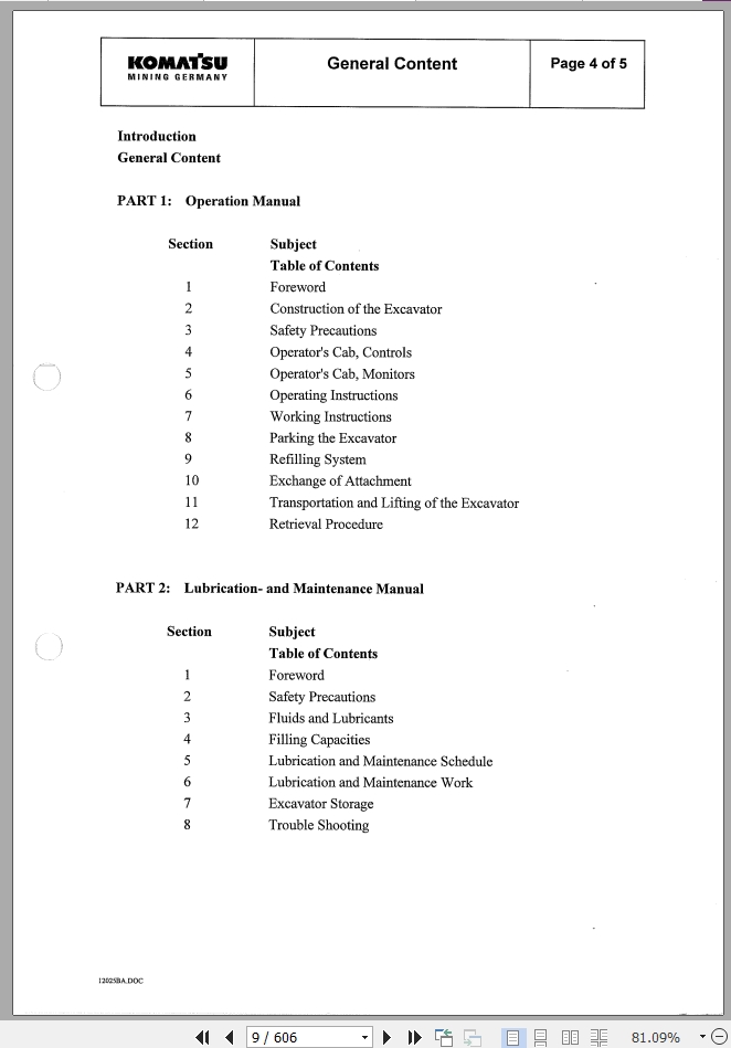 The Bookmarks of Komatsu PC8000-1 Hydraulic Mining Shovel Operation & Maintenance Manual: