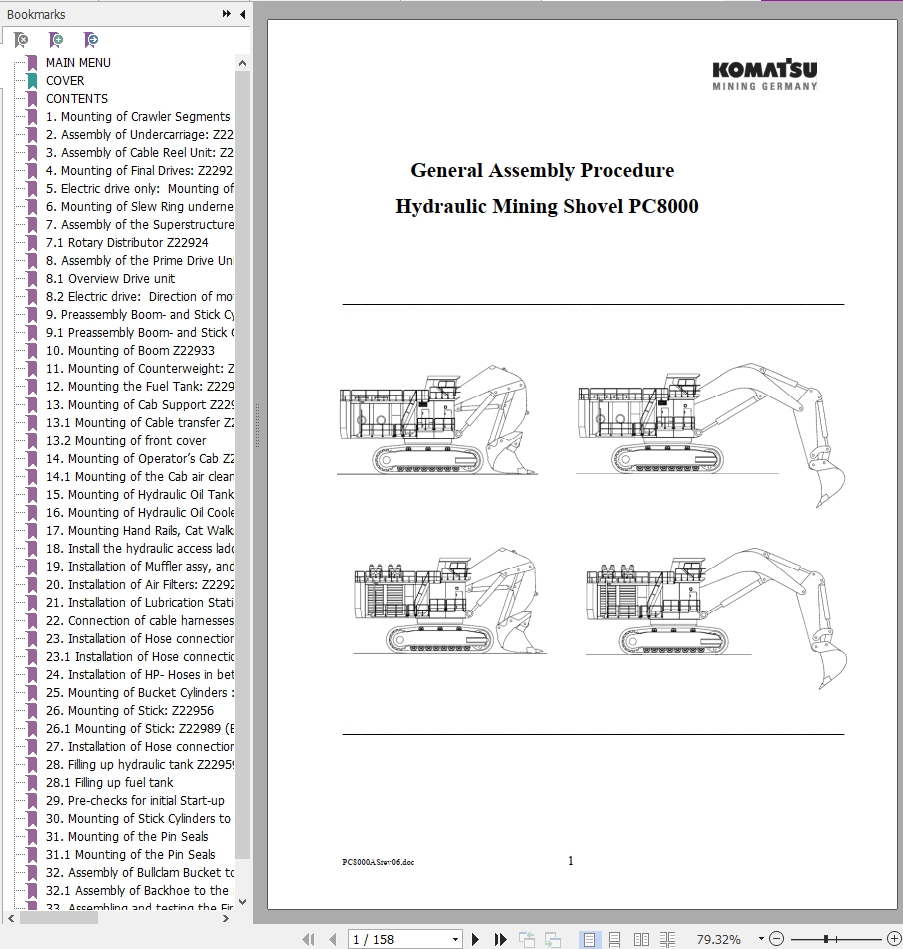 The Bookmarks of Komatsu PC000 Mining Shovel General Assembly Procedure: