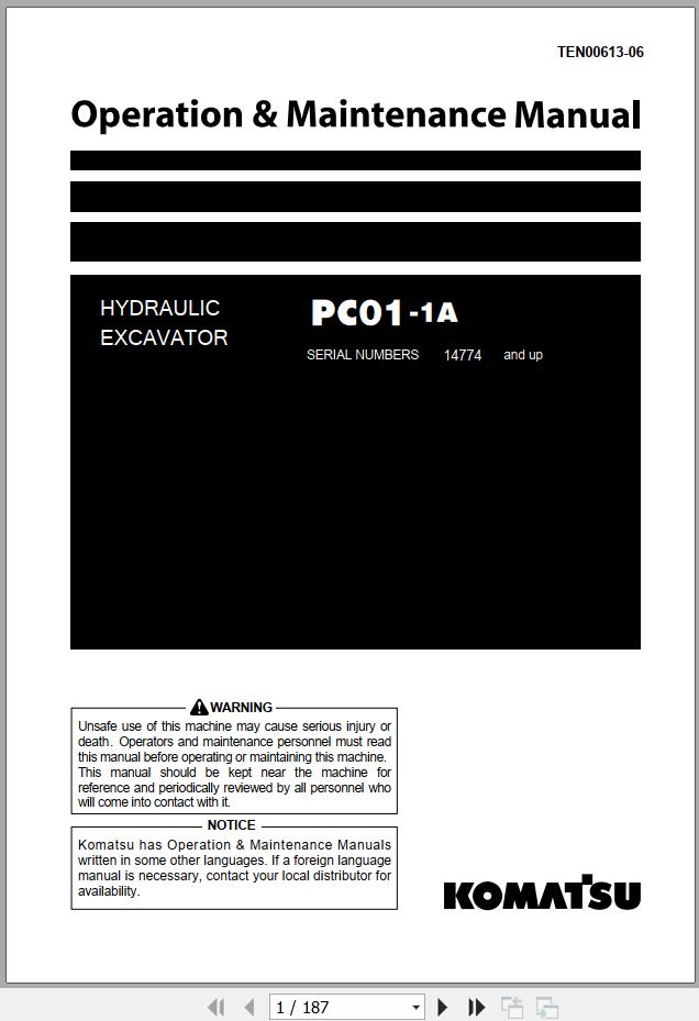 Komatsu PC01-1A Operation & Maintenance Manual TEN00613-06