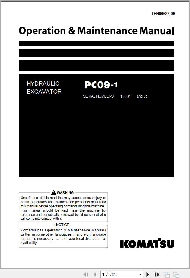 Komatsu PC09-1 Operation & Maintenance Manual TEN00622-09