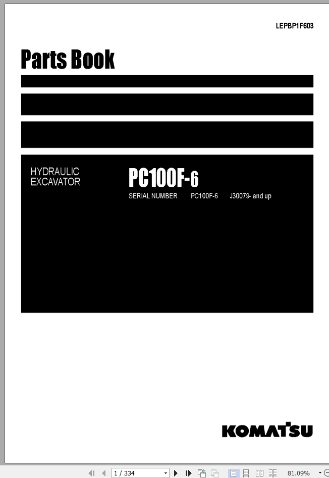 Komatsu PC100F-6 Part Book LEPBP1F603