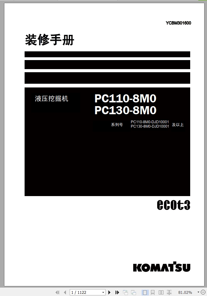 Komatsu PC110-8M0 PC130-8M0 Shop Manual YCBM301600 ZH