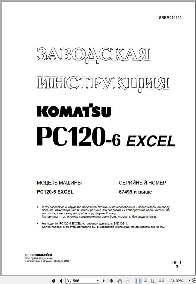 Komatsu PC120-6 Excel Shop Manual SRBM010403