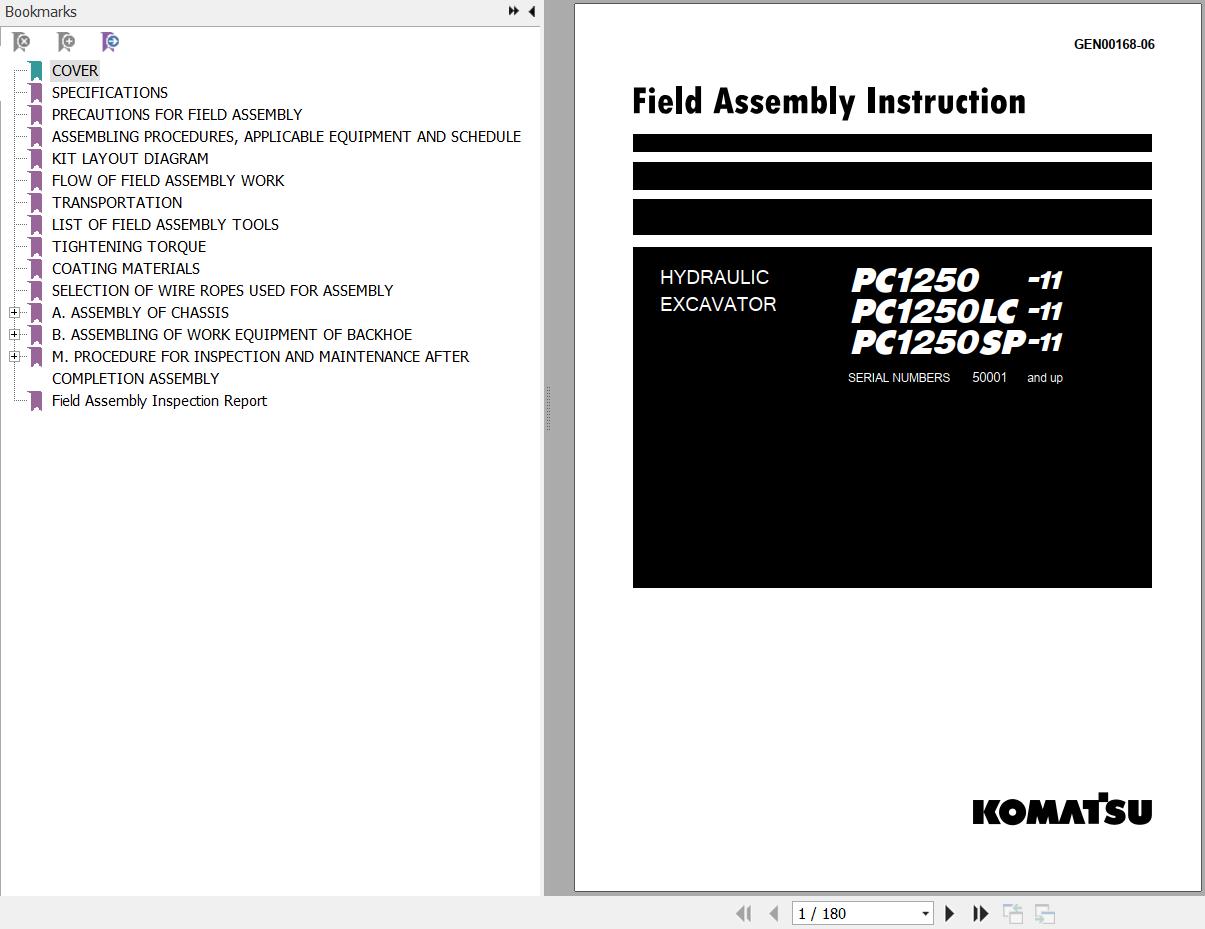 Komatsu PC1250-11 PC1250LC-11 PC1250SP-11 Field Assembly Manual GEN00168-06